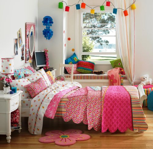 Freckles Venus 180-thread count twin duvet set are made of 100% combed cotton in luxurious percale weave Each set contains a duvet cover and sham Our most detailed design, Venus teams Scalloped edges and lace trims with vivid prints and embroidered details. You'll fall in love! Machine washable and dry. Cotton Mats and Tab top curtains complete the story. Designed in Australia.