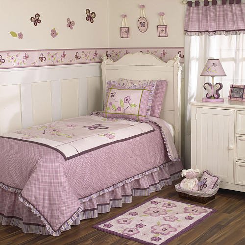 Your little sweetie will love going to sleep surrounded by the CoCaLo Sugar Plum Twin Bedding Set! Decorated in shades of purple, pink, white and green, this set displays several different patterns, fabrics and appliques; a comforter and pillow sham are included.