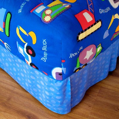 Under Construction twin-size hugger is sewn at the foot and tailored to fit the mattress so the corners at the foot of the comforter wrap around and "hug" the mattress. It features colorful illustrations of iconic construction vehicles, from dump trucks to forklifts with outline stitching and printed reverse. It is machine washable for easy care. Best of all making the bed will be easier for your kids!