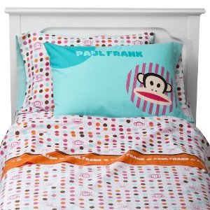 Decorate your twin bed stylishly with this sheet set by Paul Frank. A pillowcase, fitted sheet, and flat sheet comes in this set, making it easy to update your bed. The 132-thread count fabric provides a comfortable feel for sleeping and snuggling.