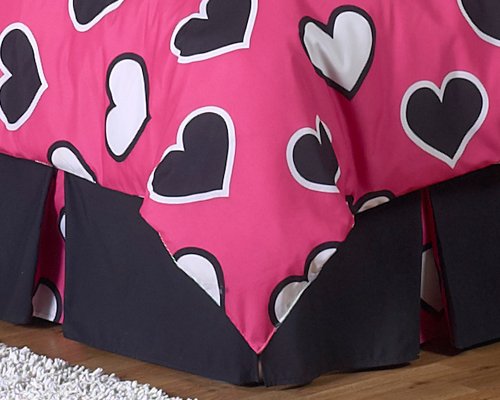 Twin Bed Skirt for Pink and Black Hearts Kids Childrens Bedding Sets by JoJo